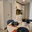 La cocina está totalmente equipada para cocinar con placa de inducción, microondas, hervidor, frigorifico y lavadora.